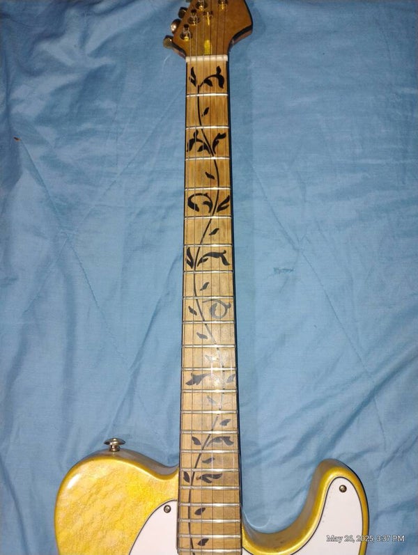 Custom Telecaster-Style Guitar – Gold Flake, Carved Hardware, Vine Inlays – Built by Russell-Guitars, LLC.